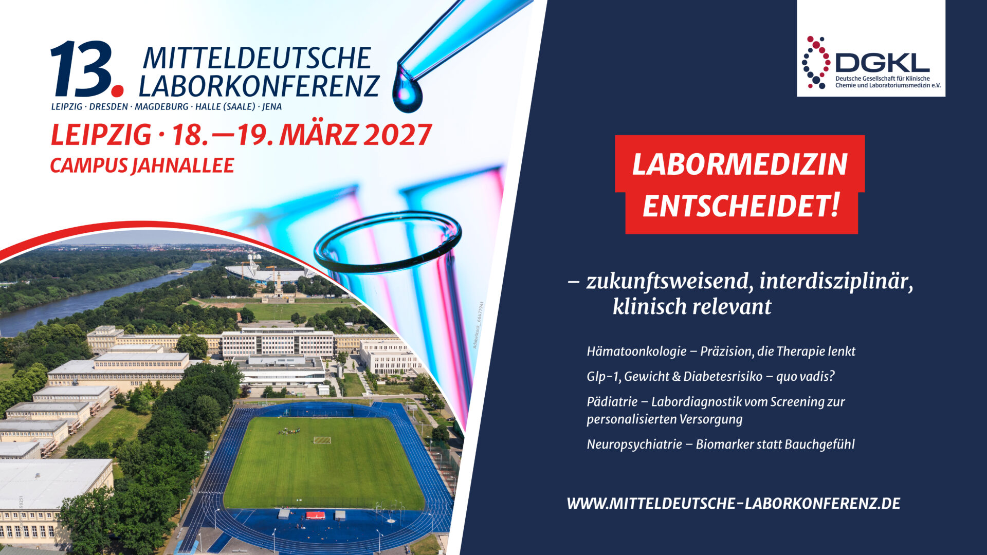 Die Mitteldeutsche Laborkonferenz, die diesmal turnusmäßig in Weimar und damit zum dritten Mal in der „Stadt der Dichter und Denker“ stattfinden wird, hat sich in den letzten Jahren mit einem thematisch breit gefächerten Programm zu einem festen Bestandteil in der labormedizinischen Weiterbildung etabliert. Sie richtet sich gleichermaßen an Nachwuchswissenschaftler, Ärzte in Weiterbildung, medizinisch-Technische Assistentinnen/-en und erfahrene Kollegen, nicht nur aus der Labordiagnostik, sondern auch aus anderen Fachbereichen.